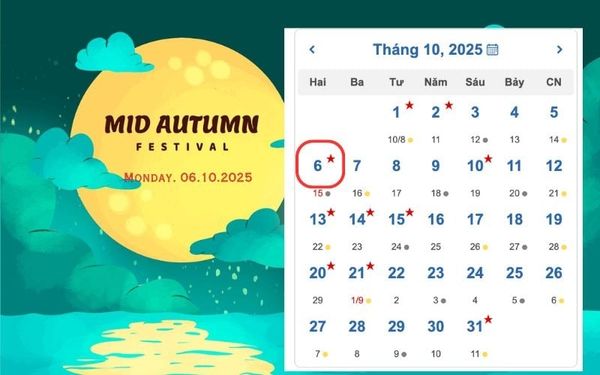 Năm 2025, Tết Trung thu rơi vào: Thứ Hai, ngày 6 tháng 10 dương lịch.